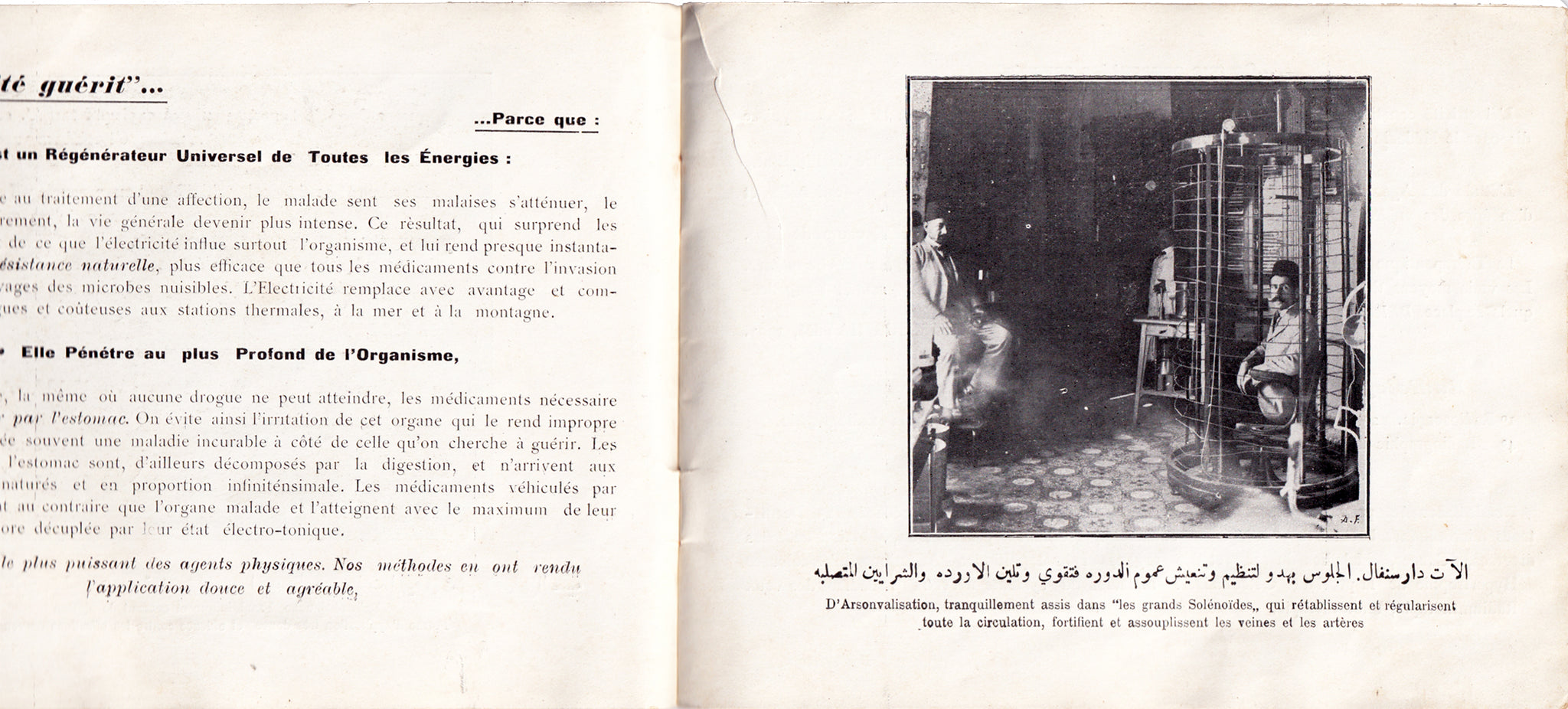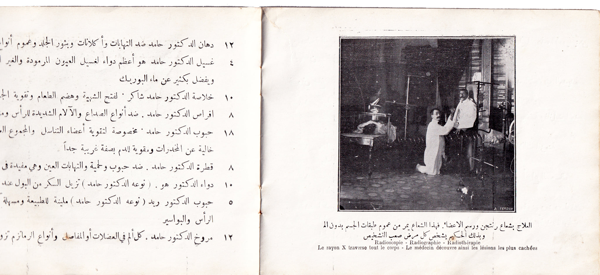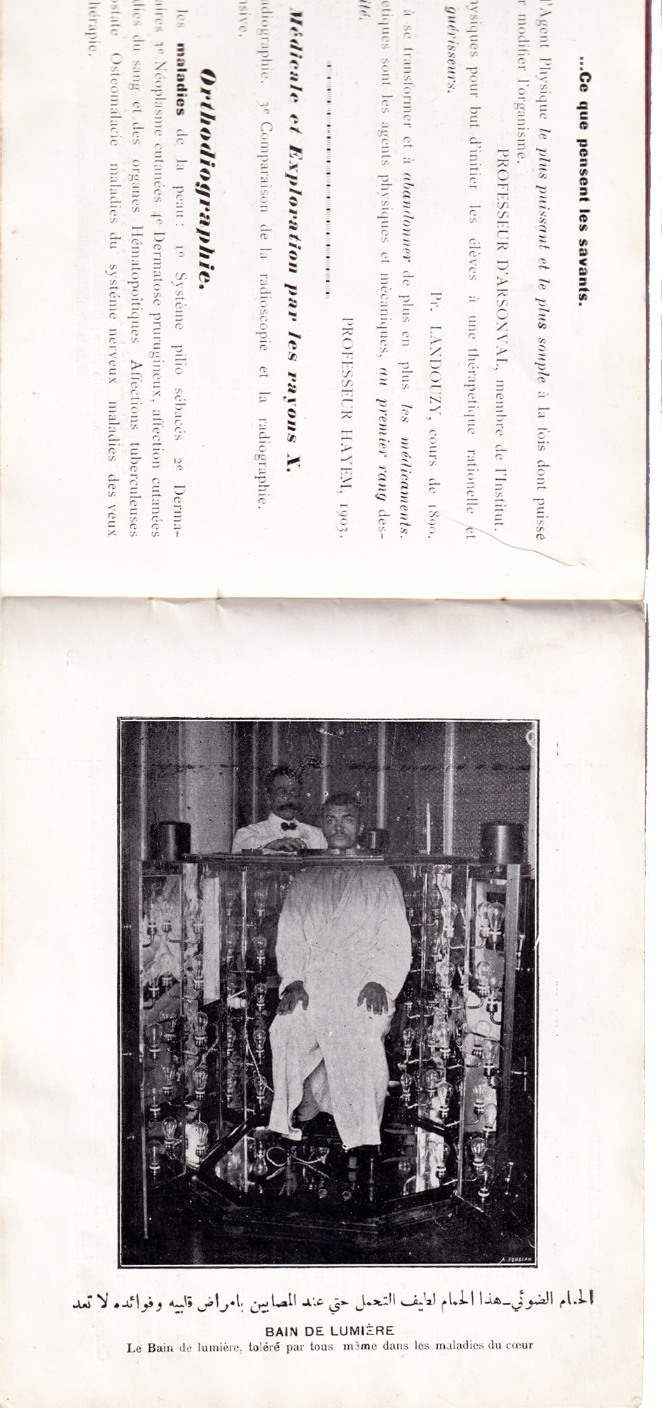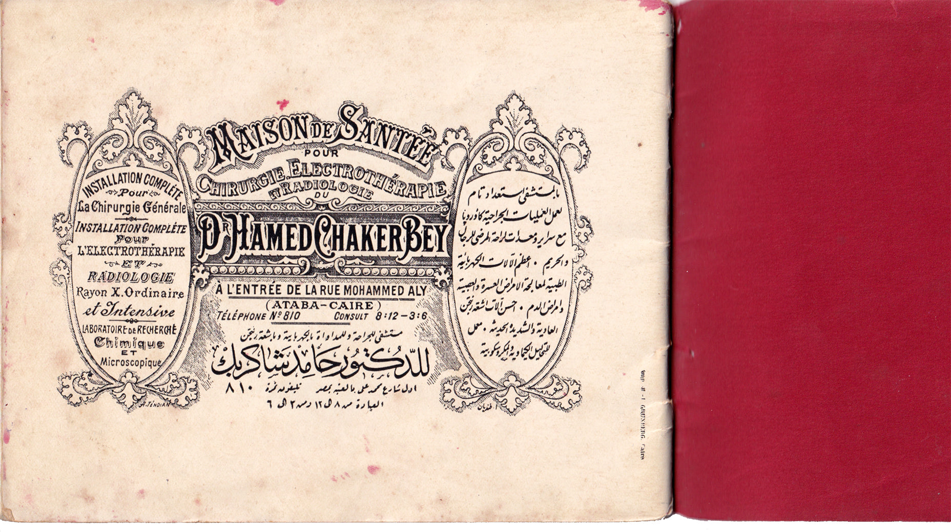 An exceedingly rare and unrecorded, richly illustrated and undated catalogue of Dr. Hamid Şakir’s private electrotherapy and radiotherapy hospital, published in Cairo between 1907 and 1915, after he deserted his post and fled to Egypt following his assignment to the Ottoman-Greek War of 1897.