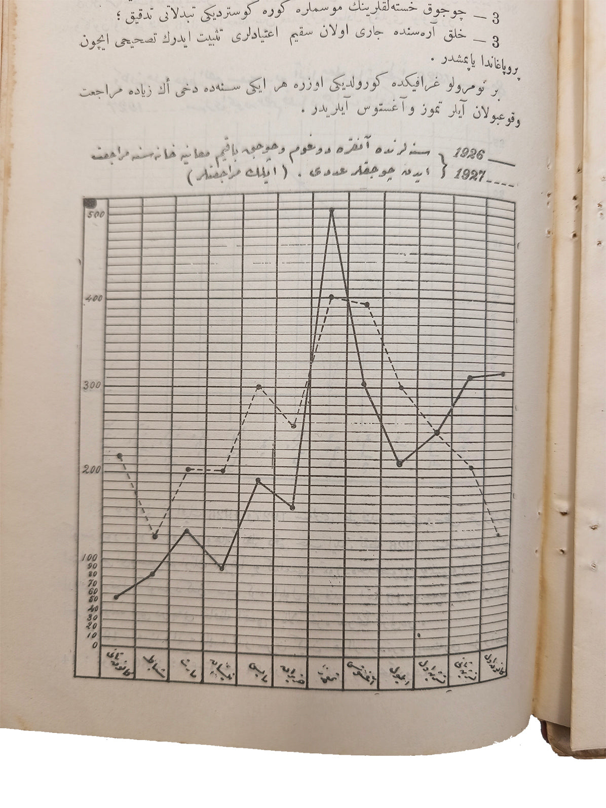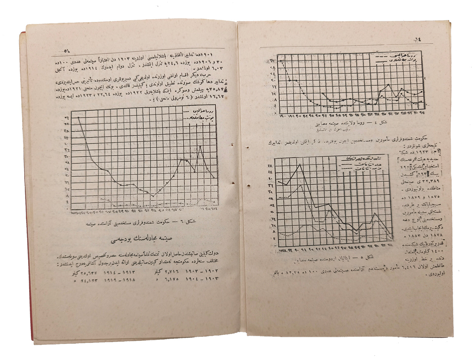 Original red and pinkish wrappers. Large roy. 8vo. (24 x 17 cm; 25 x 18 cm). In Ottoman script (Old Turkish with Arabic letters), a folded map, statistical tables, and photographic ills. One of the 1928 issues lacks covers, and another issue shows splitting at the spine. The Latin-script issue has a small tear at the lower portion of its front cover. Otherwise, the collection is clean overall.